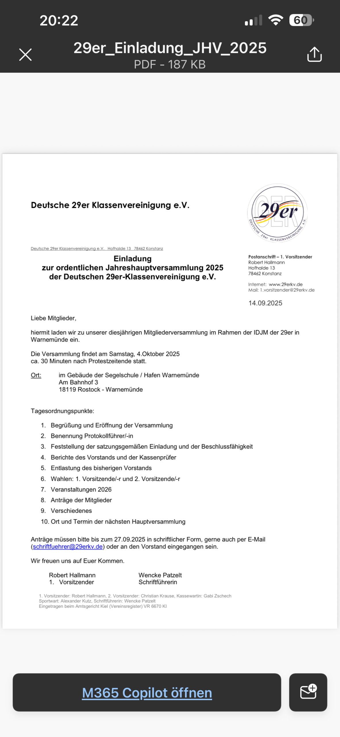 Uncategorized – 29er https://29erkv.de Deutsche 29er Klassenvereinigung Thu, 18 Sep 2025 18:31:23 +0000 de hourly 1 https://wordpress.org/?v=6.8.2 https://29erkv.de/29er/wp-content/uploads/2017/08/cropped-29er-logo-quadrat-32x32.png Uncategorized – 29er https://29erkv.de 32 32 Einladung zur Jahreshauptversammlung 2025 https://29erkv.de/21008-2/ https://29erkv.de/21008-2/#respond Thu, 18 Sep 2025 18:26:29 +0000 https://29erkv.de/?p=21008